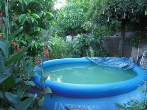 終日快晴、気温27/17度 今日もいい天気です。 気温は27度とちょっと下がってきたけど。まあ、強烈な日差しがあるから、プールは引き続き快適。 しか~し、このところ、プールカバーを掛けないでいたら・・・ 藻類が発生したみたいです。 慌てて薬剤を…