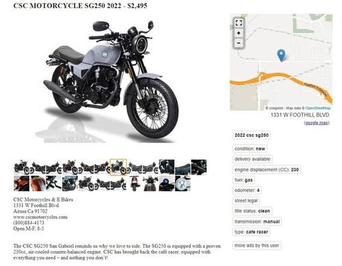 晴れ、気温26/19度 まずまず晴れました。 子供の通学バイク、割と最近の日本製の中古がないかとCraigslistを眺めていたらこんな売り物が。 新車だよ。この値段だと当然C国製ですね。まあ、販売は米国なので最終組み立て、チェックは米国です。エンジン…