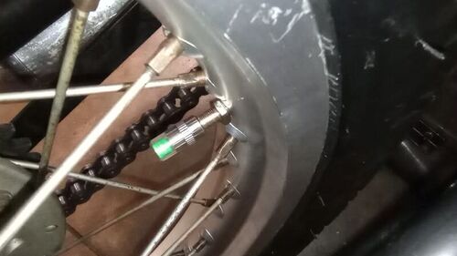 晴れ、気温28/19度 朝から晴れましたが、白っぽい。地平線付近に薄い雲があります。日中もそれなりな雲。 さて、BSAの後輪の様子は? C国製の手動TPMS(笑)によれば、うん、漏れてない。 後輪の脱着手順は清書してラミネートし、工具バッグに入れます…