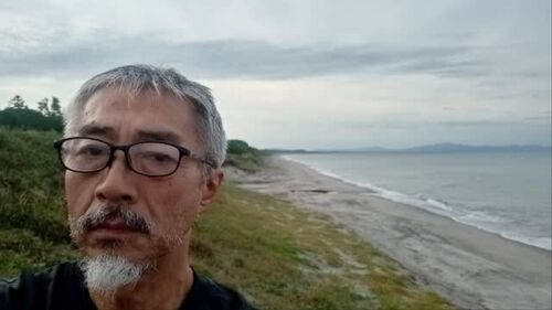 曇りのち晴れ、気温26/22度6時起床。夜半には雨がパラついたり、星空もちょっと見えたり、相変わらず不安定。犬の散歩の爺さんとお話。昔はCB250に乗ってたって。8時半前出発。南、野間岬方向へ。入来浜に立ち寄る。コチラが北方。今朝出て来た。あの…
